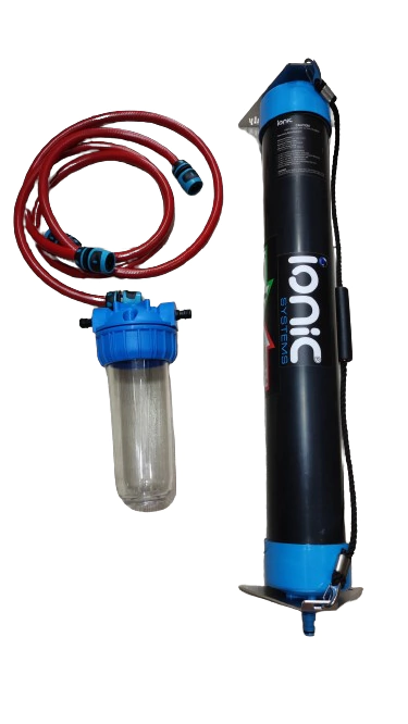 O sistema Caddy™ Softner da Ionic Systems é a escolha ideal para amaciar a água. É um sistema portátil e de fácil transporte e conecta-se em linha entre o abastecimento de água e a máquina. Utilizar o amaciante de água correto melhorará muito o desempenho e vida útil do filtro de osmose reversa.