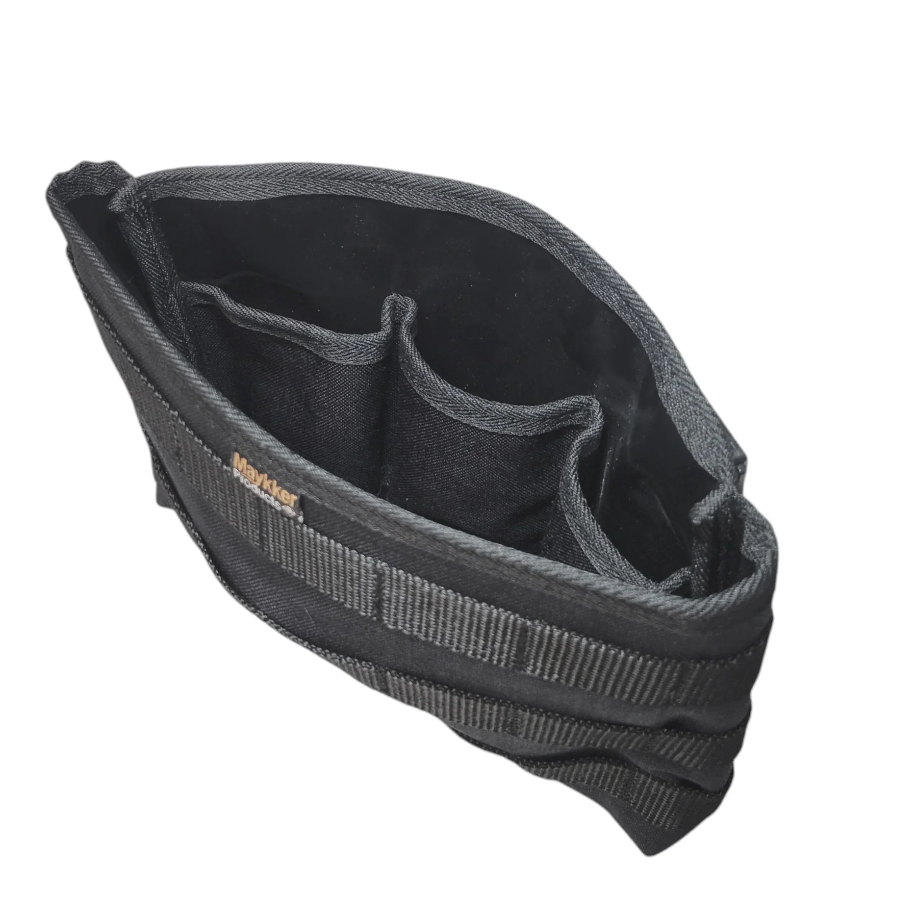 Interior built in sliver pockets to hold various types of small hand tools, (track brushes, spacklel knives, pliers, etc).