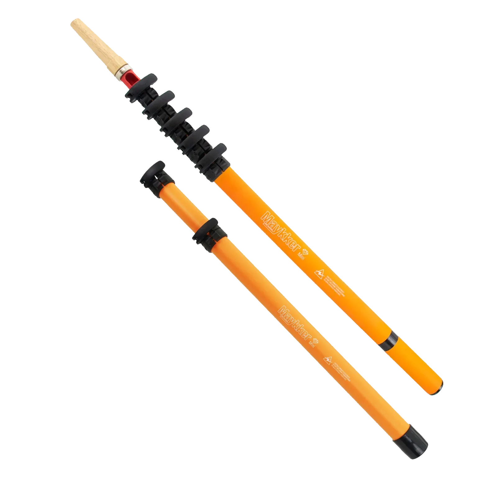 This Maykker Mini Add-On fits the 8 foot model of the Maykker Mini 2.0 The super-compact extension poles are perfect for storefront routes, but if you need them to be a little taller, you can purchase this extension set for 3 more feet. Easy to install, simply slide this add-on over the outermost section of your Maykker Mini 2.0. This does not fit the original 10-foot model.