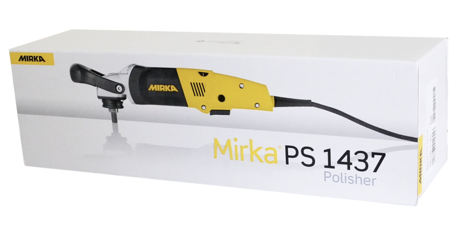 The Mirka® PS1437 polishing machine has a powerful electric motor with high torque. The pre-selection of the speed makes it possible to generate the exact speed for polishing. A bail handle and a side handle are included for better control during work. The spindle lock enables the disc to be changed quickly and easily. To achieve the perfect finish, it is recommended to use Mirka Polarshine polishes, the Mirka sanding disc and polishing pads.