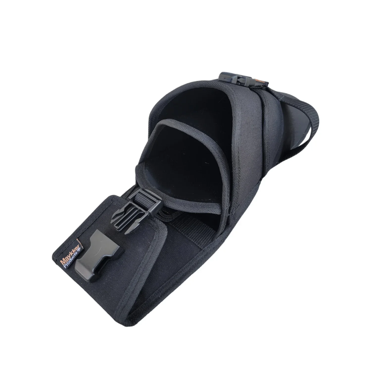 The exterior surfaces are covered in a heavy-duty 1000 Denier military grade fabric. That means it is thick and sturdy for preventing scratches and protecting the integrity of the Silencer. Going through pricker bushes while cleaning exteriors of homes won't damage the Silencer as it would PVC. This abrasion-resistant and durable 1000D Cordura is easy to clean with a little soap and water so you can keep it looking new and professional. The interior dividers are heavy industrial grade vinyl with the strength to stand up to daily use. During construction, all the seams are double or triple stitched with additional bar-tack stitching on high-stress areas to prevent any failures. Stabilizer pieces on the upper back prevent the loop from over bending to keep the Silencer's shape and stability.